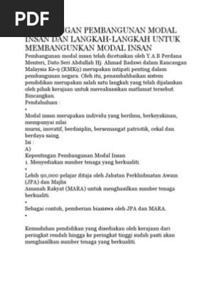 Related : Pembangunan Modal Insan In English : Pembangunan kapasiti dan pembangunan modal insan..